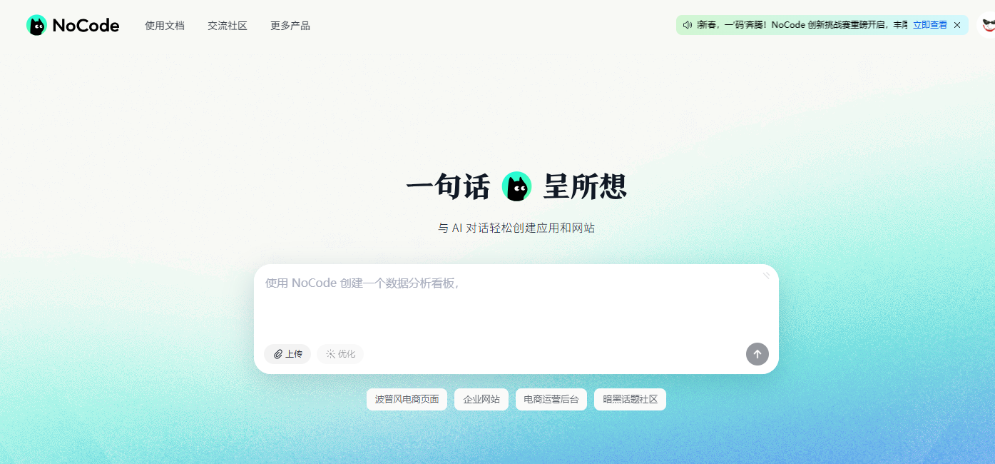 美团nocode号称:NoCode 用一句话把你的创意变成可落地的 Web 应用!后台是远近闻名的supabase,提供了一套完整的前后端解决方案,有存储、有数据库、有云函数,全是白嫖。基于他的存储,搭建的一个在线图床官网:https://nocode.cn/文档:https://nocode.cn/docs/guide/index.html