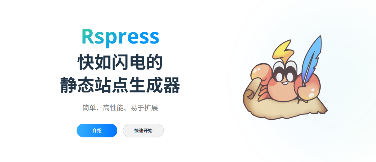 Rspress 是一款基于 Rust 前端工具链的静态站点生成器,专注于快速构建技术文档、博客、组件库演示及轻量官网等静态内容站点。它以性能优化为核心,同时兼顾易用性与扩展性,适配 React/TS 技术栈开发者的使用习惯。