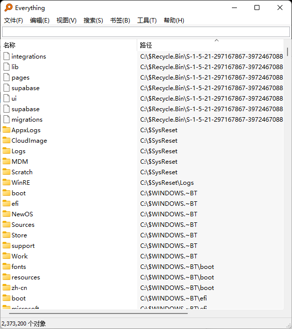 Everything 的核心优势在于 “快”,这源于其对 NTFS 文件系统的深度优化 —— 直接读取磁盘的 MFT(主文件表)构建索引,而非扫描文件内容。即使电脑中存储百万级文件,输入关键词后也能实时显示结果,响应时间通常不超过 1 秒;初次安装时,全盘索引构建仅需几分钟,远快于传统工具的数小时扫描。