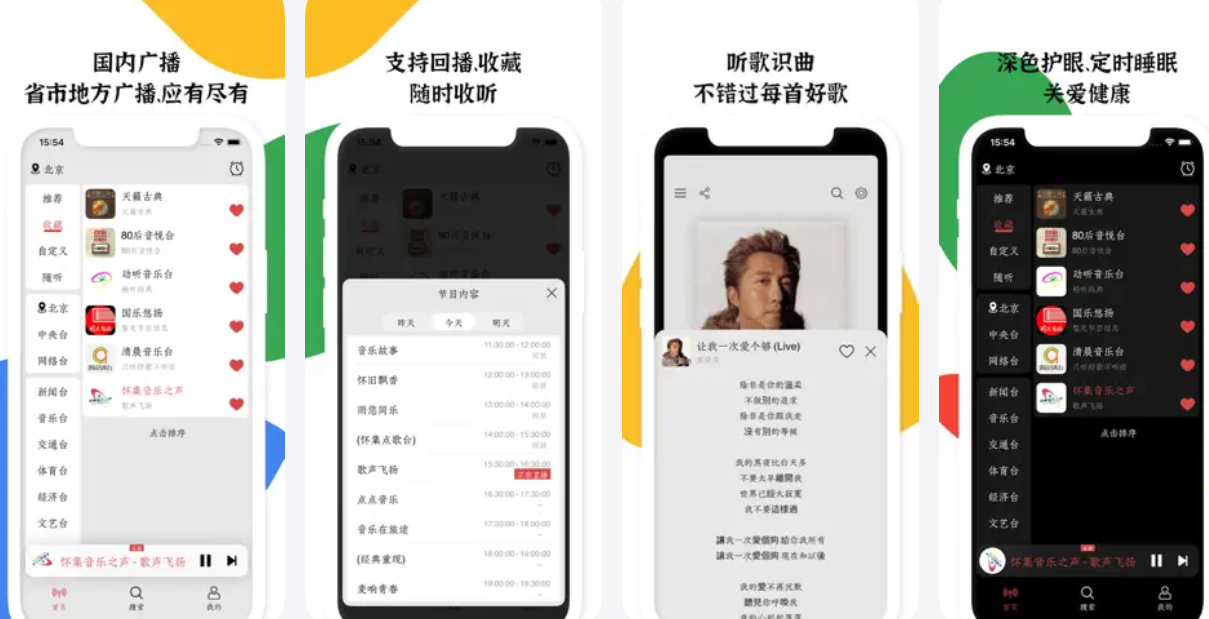 - 节目回放:支持翻看收听昨天和今天错过的节目列表内容。