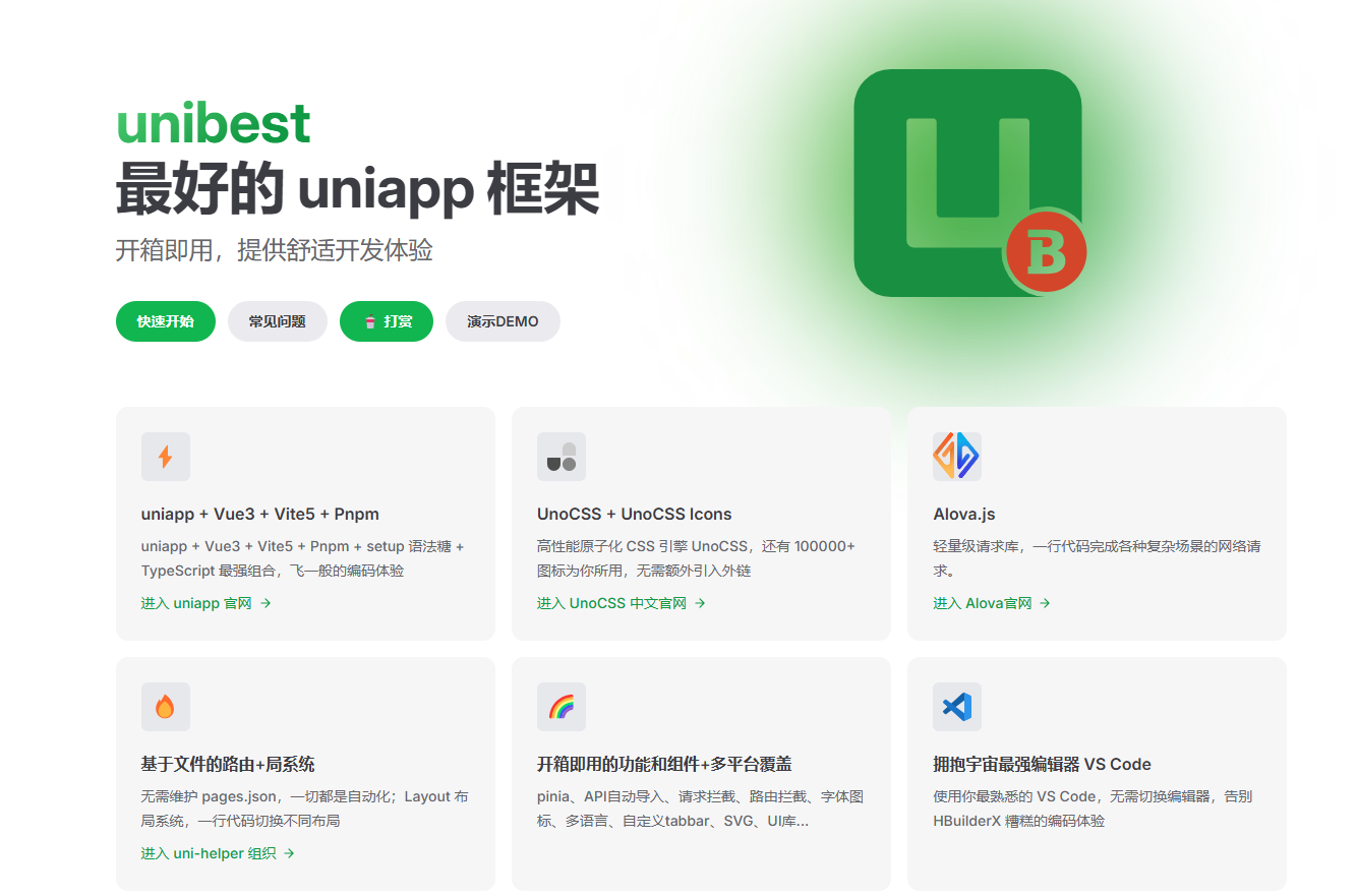 unibest —— 最好的 uniapp 开发模板,由 uniapp + Vue3 + Ts + Vite5 + UnoCss + wot-ui + z-paging 构成,使用了最新的前端技术栈,无需依靠 HBuilderX,通过命令行方式运行 we...